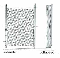 Diamond lattice folding gates are constructed of single channels riveted back to back and arranged in diamond pattern. Channels may be 3/4″ x 3/8″ x 1/8″ approximately 6″ on centers. The overall height becomes less as the gates are extended; approximately 1/2″ to each foot of width. The pivot point is usually placed near the bottom to maintain a more constant distance to the floor. Vertical members may be provided on wide gates with casters on floor or track and hangers above.